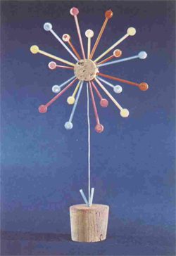 Stick the wire into the cork flower and then into the large cork which makes the pot. Push it in well.