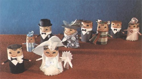Happy little cork people line up in this wedding procession! What fun it is to make them and especially to dress them! Use costume jewelry and fancy costumes to dress each guest in his or her best!